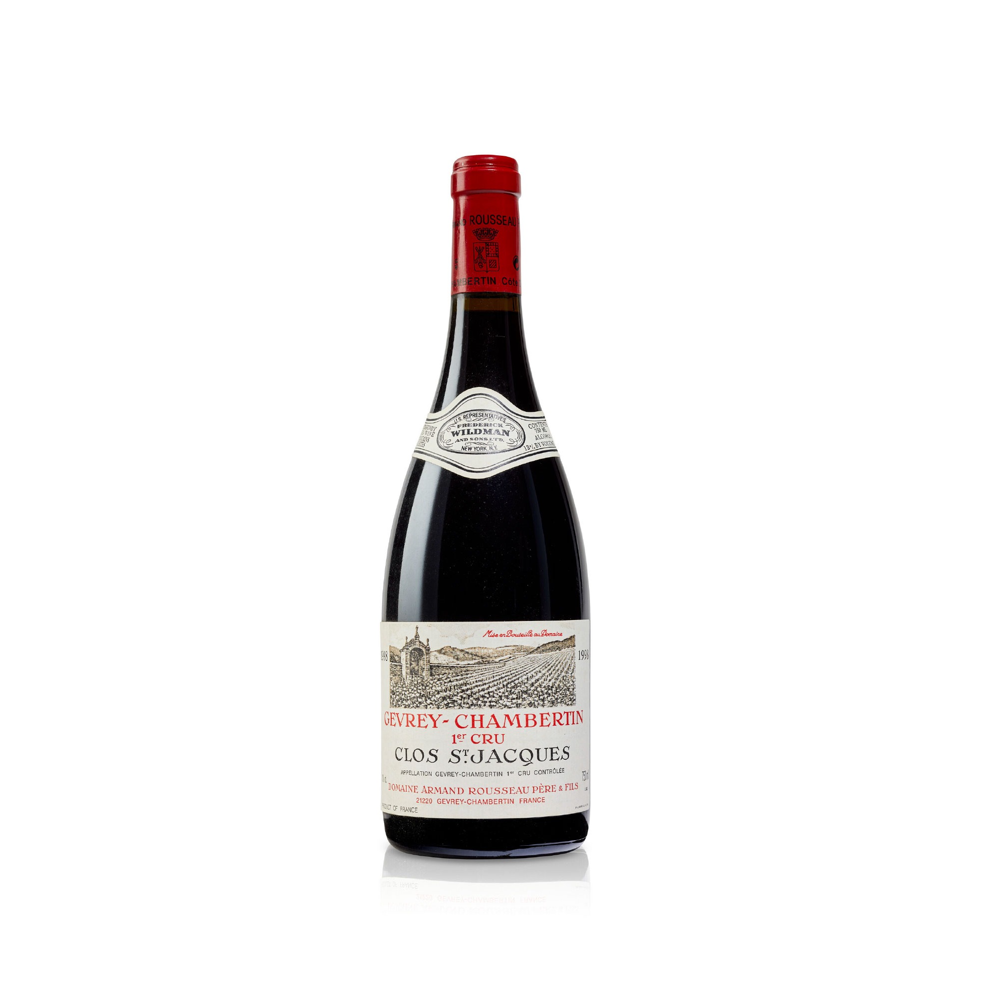 Exceptionnelle bouteille de collection Gevrey Chambertin Clos Saint Jacques du prestigieux Domaine Armand Rousseau. Pièce rare témoignant du savoir-faire bourguignon traditionnel.